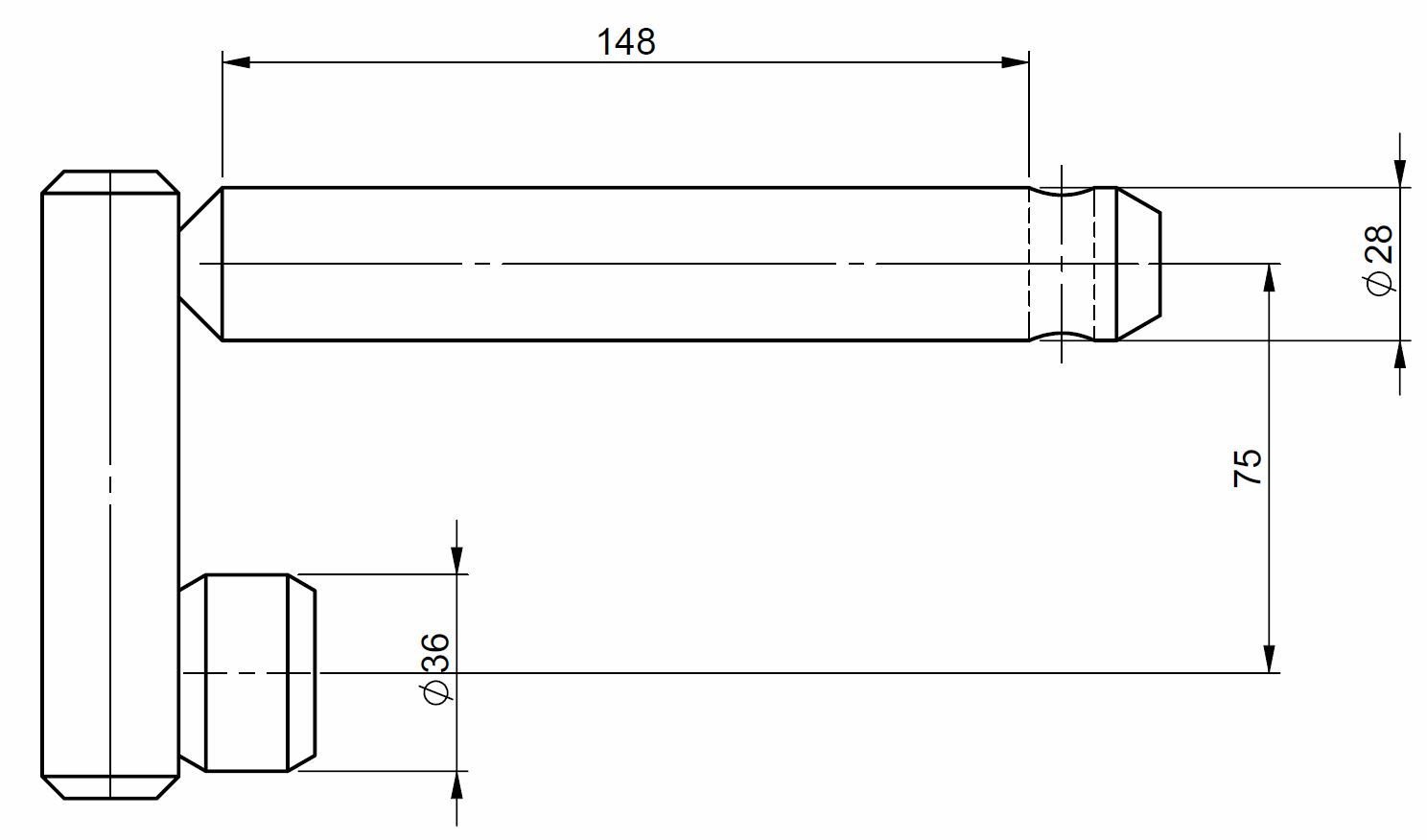 Axe d'attelage Ø28 x 150 avec butée