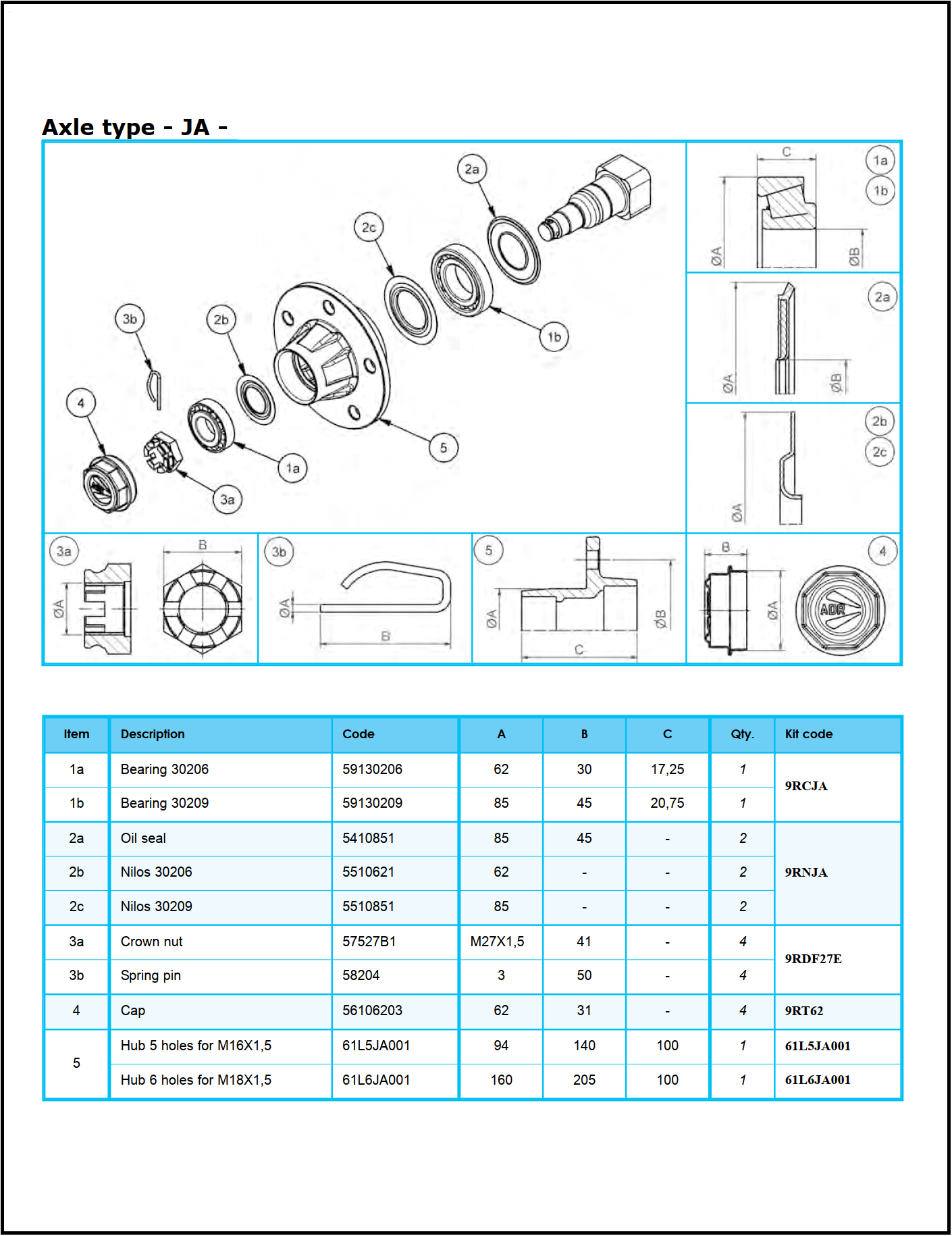 Demi-essieu non freiné 50x50 5M16 - voie 250mm