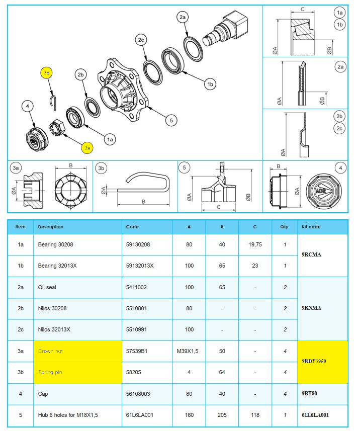 Ensemble écrou à créneaux et goupille pour essieu Stripcat carré 70
